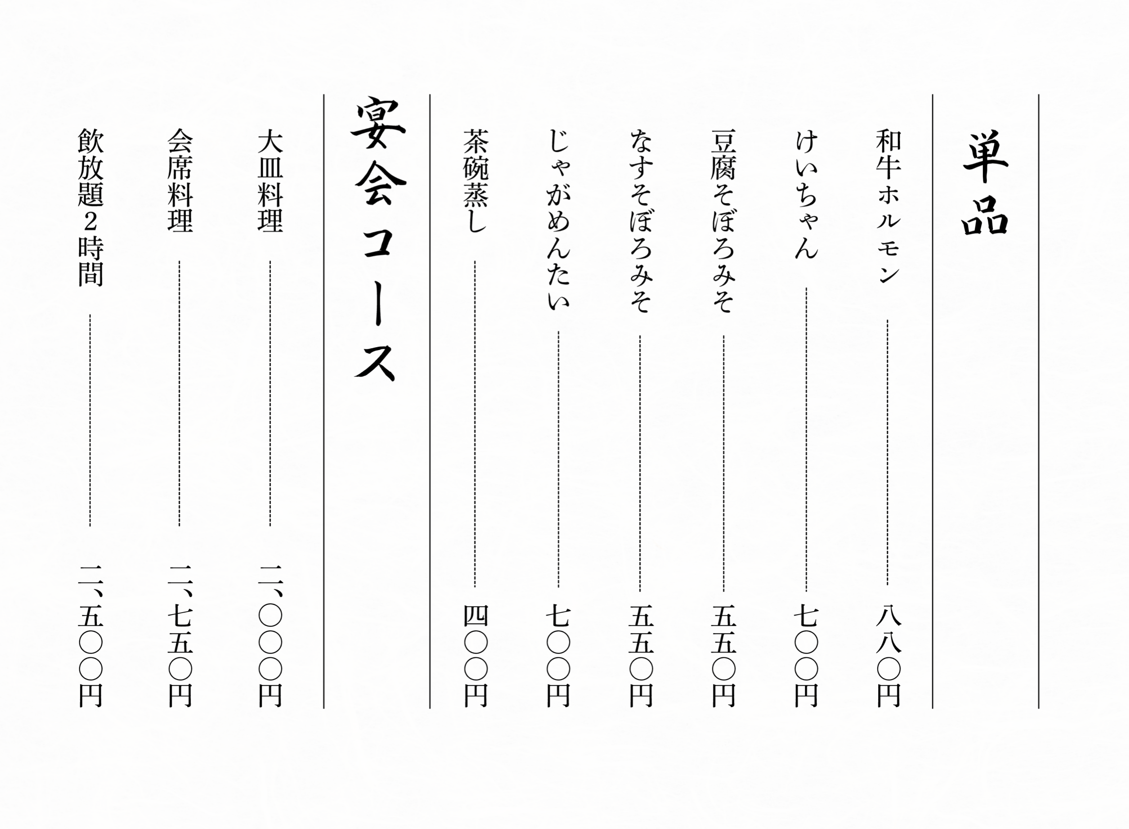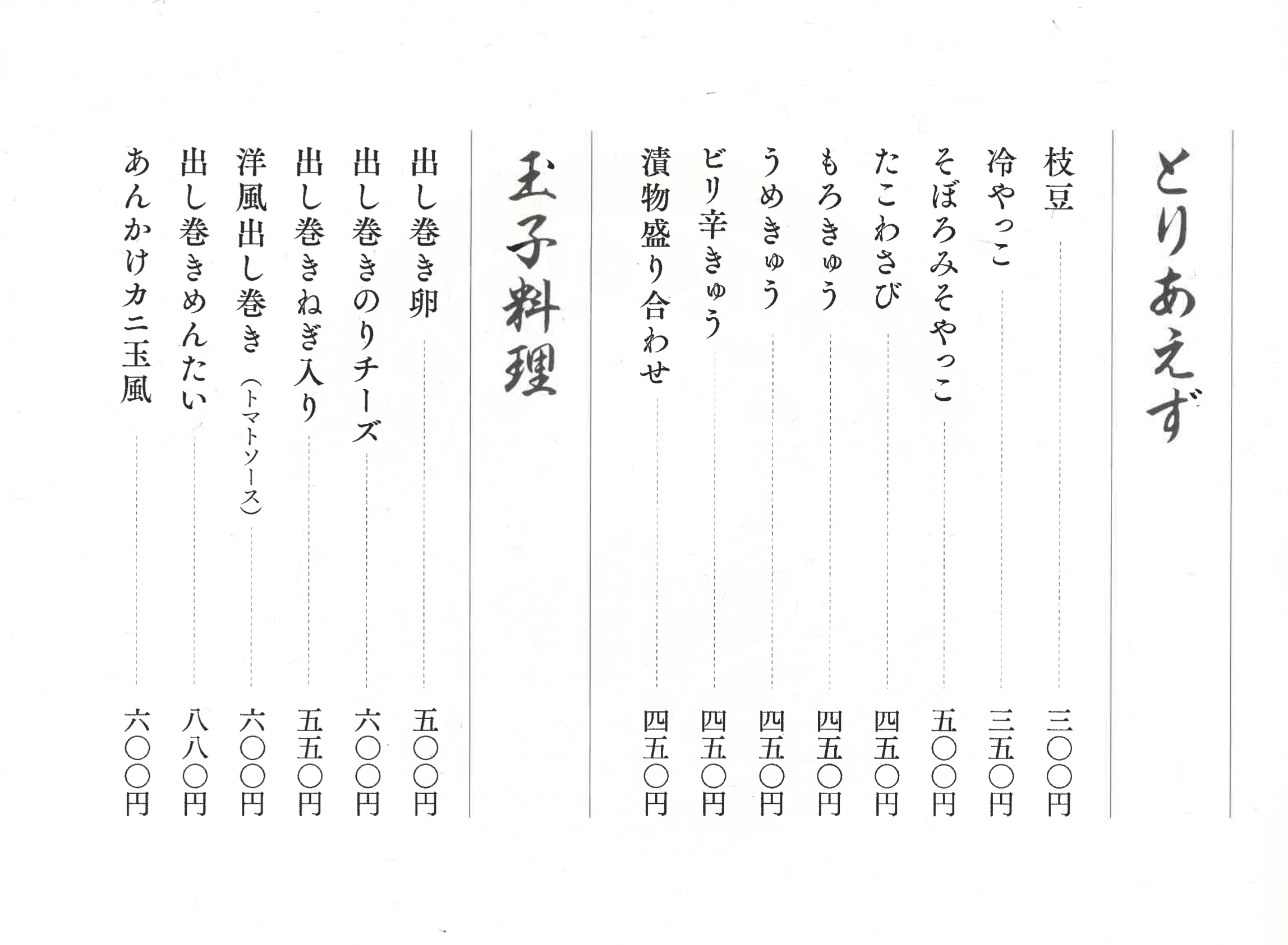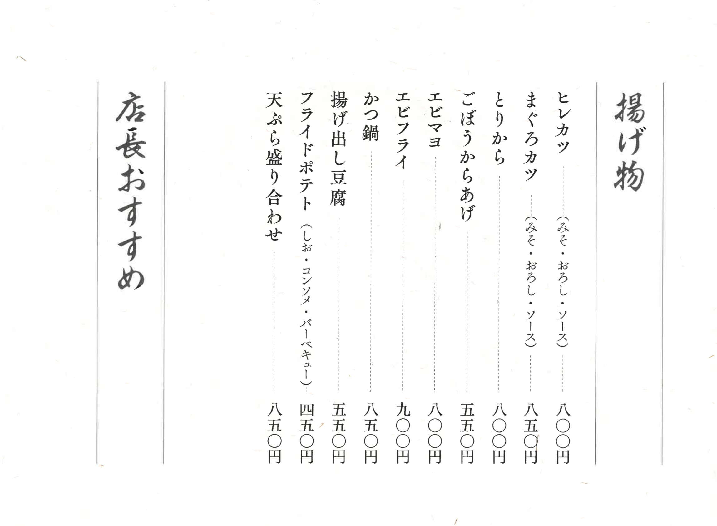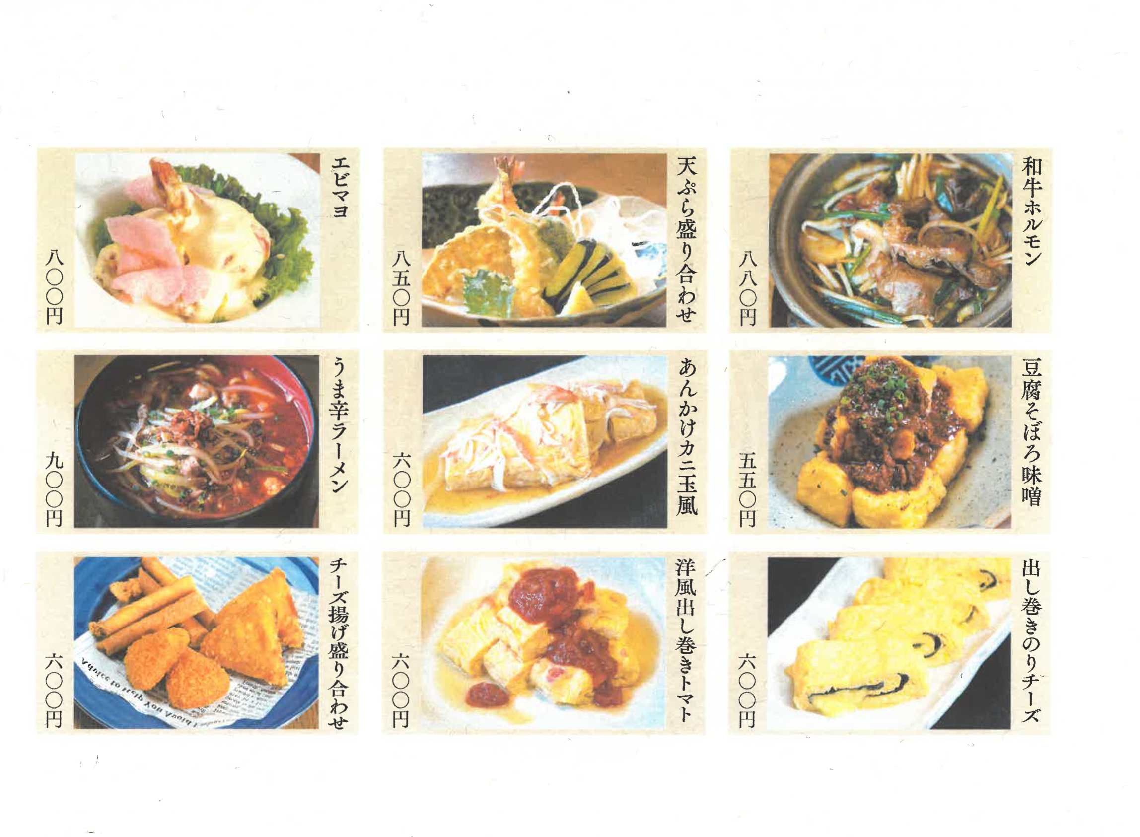 ※写真をクリックすると拡大表示します ※価格はすべて税込価格です。 夕 膳 主菜・副菜・主食から一品づつ選んでください 【主菜】天ぷら・エビフライ・とんかつ・まぐろカツ・からあげ・焼き魚 【副菜】茶碗蒸し・豆腐そぼろ味噌・なすそぼろ味噌 【主食】赤出しとご飯・ミニうどん 和風膳 小鉢・お造り・茶碗蒸し・天ぷら・茄子みそ・赤出し・ご飯・漬物・デザート(九品) 花 膳 小鉢・お造り・焼き魚・茶碗蒸し・出し巻き・天ぷら・ご飯・漬物・赤出し・デザート(十品) プリプリエビマヨ 天ぷら盛り合わせ 和牛ホルモン うま辛ラーメン あんかけカニ玉風 豆腐そぼろ味噌 チーズ揚げ盛り合わせ 洋風出し巻きトマト 出し巻きのりチーズ ひとくちデザート きまぐれデザート ジェラートデザート デザートコース English Page ▶︎